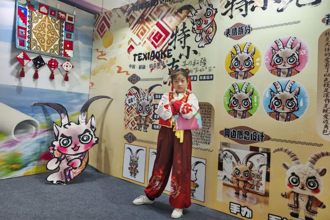 在动漫节现场,“特小克”的形象设计处处彰显巧思,灵感源于特克斯“北山羊出没之地”。其服饰萃取新疆民俗传统纹样,衣身花纹呼应“八卦城”城市布局;眉毛似天山脉络,眼眸含太极元素,暗藏易经文化;腮红尽显地域精气神与气候特质;墨色山羊角造型如“八卦城”的“八”字,寓意当地蒸蒸日上的发展态势。“特小克”谐音“特别好客”,既传递出特克斯淳朴民风,也契合当地人的豪爽性格。
