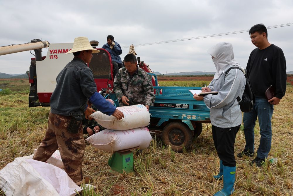 10月24日,开远市农业农村局、云南农业大学、开远市农民院士科技服务站联合组成专家团队,对万亩高标准粮烟协同发展项目核心区的旱地优质稻开展实收测产。专家团队穿梭于田间,仔细查看稻株长势,严格按照测产流程,针对不同品种划定取样区,丈量面积、机械收割、取样称重,剔除空秕粒与杂质,精准测定水分含量。同时,结合对品种适应性、抗病性的综合评估,最终得出实际亩产数据,为后续推广提供科学依据。